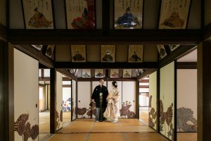 青の蓮の襖絵や縁側、お庭での撮影は