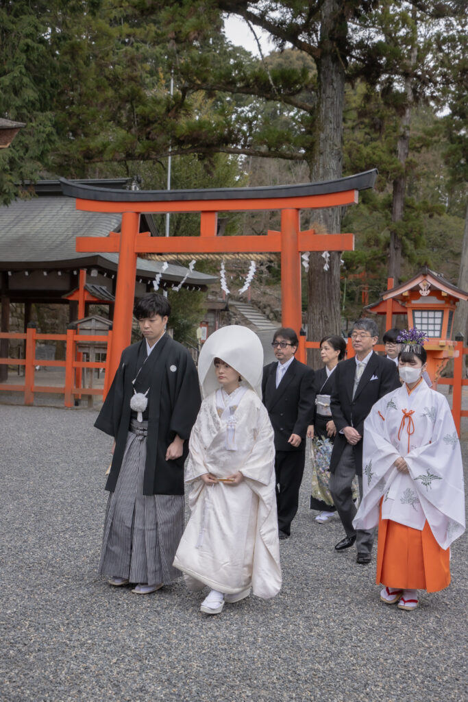 家族も神前式に参加したことがないようで、京都らしいロケーションにとても喜んでおりました。